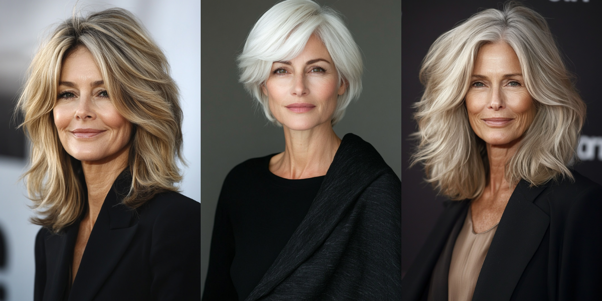Color plays a big role too. Rich brunettes, warm blondes, and natural silvers enhance the look effortlessly.