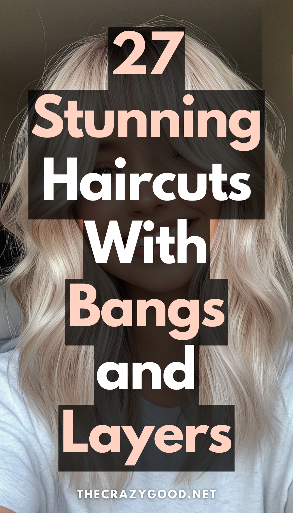 17. Platinum Blonde Wavy Layers with Swoop Bangs
